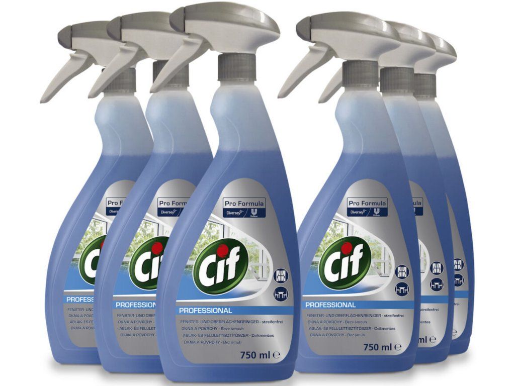 Cif Glass & Multi Surface. Čistiaci prostriedok na okná a rôzne povrchy, odstraňuje špinu a mastnotu. Prostriedok rýchlo odstráni špinu a mastnotu a zanechá len žiarivý povrch bez šmúh v priebehu sekundy. Čistiaci prostriedok je určený na okamžité použitie na sklo a rôzne povrchy v interiéroch ako sú napríklad zrkadlá, stoly a všetky iné umývateľné tvrdé povrchy.