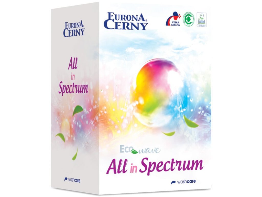 EURONA All in Spectrum. Špeciálny prací prostriedok na všetky druhy bielizne. Jedinečné zloženie pre iskru všetkých farieb a žiarivú čistotu bielizne! Unikátna receptúra pre dokonale čistú a žiarivo bielu, ale aj farebnú bielizeň. Obsahuje prírodné zložky, ktoré vynikajú nadštandardnou bieliacou schopnosťou, zároveň však zachovávajú sýtosť farieb. Komplex ekologických tenzidov a enzýmov efektívne odstraňuje odolné škvrny. Chráni pred nežiaducim blednutím a zosivením farieb. Vďaka výnimočnej kompozícií šetrných a účinných zložiek predlžuje životnosť tkanín. Zanecháva bielizeň prevoňanú jemnou hypoalergénnou vôňou s nádychom ovocných tónov. Vhodný na pranie bielizne predovšetkým pri nízkoteplotných programoch. Je ľahko biologicky odbúrateľný. Bez obsahu SLS/SLES, fosfátov a fosfonátov.