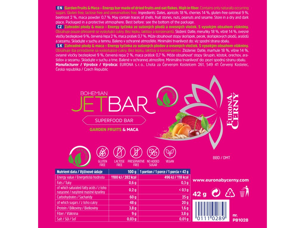 JetBar BIGBEET Fruits & Maca, 42 g — Energetická tyčinka
