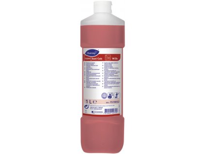 TASKI® Sani Calc. Čistiaci prostriedok—do kúpeľne, na odstraňovanie vápenatých usadenín a vodného kameňa. Prostriedok je určený na odstraňovanie vápenatých usadenín a vodného kameňa z povrchov, odolných voči kyselinám v sanitárnej oblasti. Vysoko účinný tekutý prostriedok. Zloženie obsahujúce koncentrovanú kyselinu, odstraňuje aj najväčšie nánosy vápenatých usadenín. Denné používanie prostriedku zabraňuje tvorbe vápenatých usadenín a tým obmedzuje nutnosť používania silných čistiacich prostriedkov.